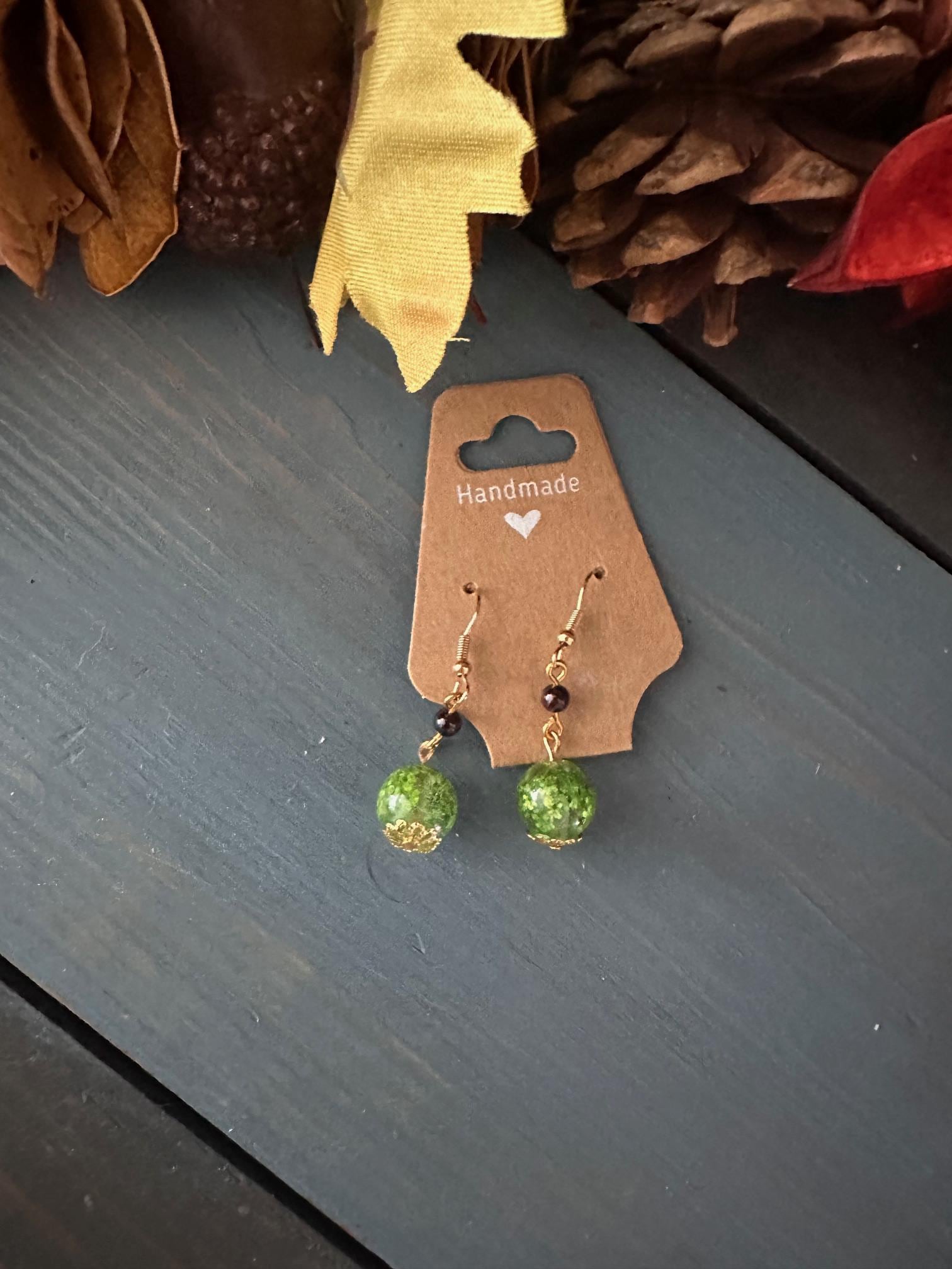 These elegant handmade earrings feature real Queen Anne’s Lace flowers, naturally dried and pressed, then preserved in crystal-clear resin. The flowers are tinted a vivid green, giving them a striking and earthy look that stands out beautifully.