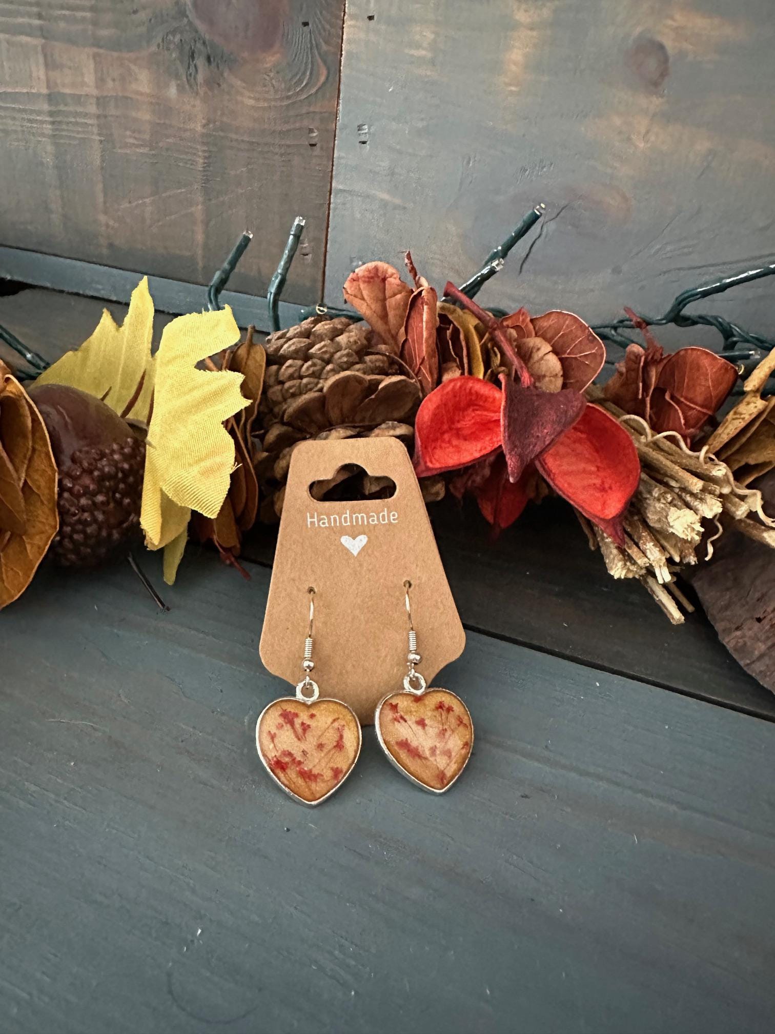 The florals are encased in elegant heart-shaped sterling silver–plated bezels, paired with matching hooks for a clean, timeless shine. Lightweight and full of botanical charm, these earrings add a romantic, nature-inspired touch to any outfit.